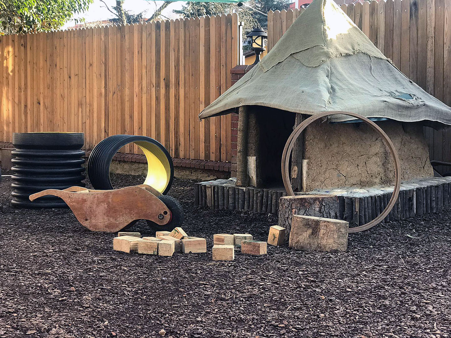 Indeed, it is the Early Birds themselves, in other words the children, who designed this 600m2 outdoor space. Using the project-based learning approach (PBL), teachers guided the children through the dreaming, planning and implementation phases. Currently, there are an adobe house, a treehouse, sandpit and several raised vegetable beds in the garden, all designed by the children. Streets, tunnels and bridges for their bicycles and plenty more will follow soon.